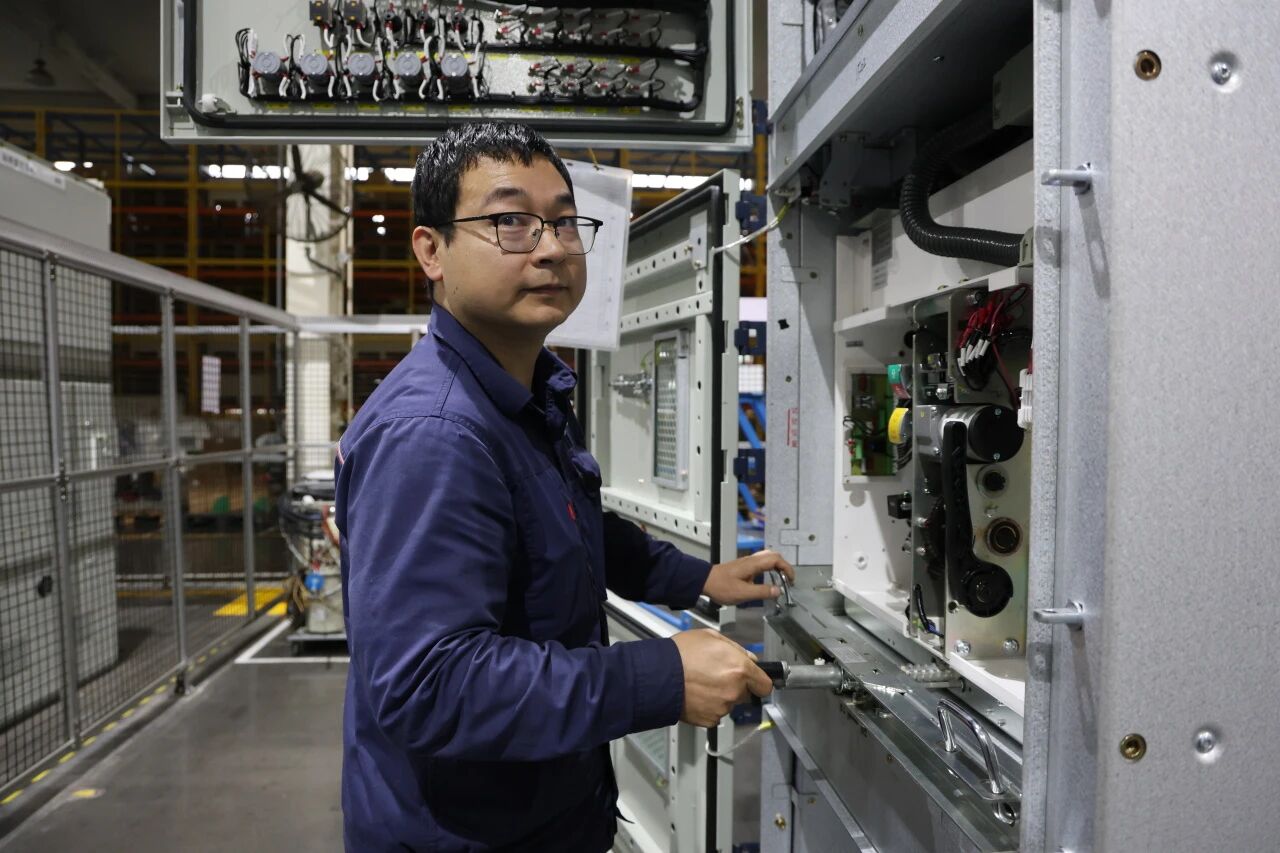 在创新方面,他善于在工作中总结经验、优化方法。近年来,他累计提出精益提案百余条,均被公司采纳。当被问及最自豪的事,他轻拍身旁的KYN61开关柜说道:“通过经验积累,我改良了其后实心轴的装配与端封板存放方式,使单台开关柜装配效率提升约30分钟。”在班组中,他积极分享经验、开展培训,经其悉心指导,多名组员已能独立完成从装配、调试到问题处理及收尾的全流程工作。