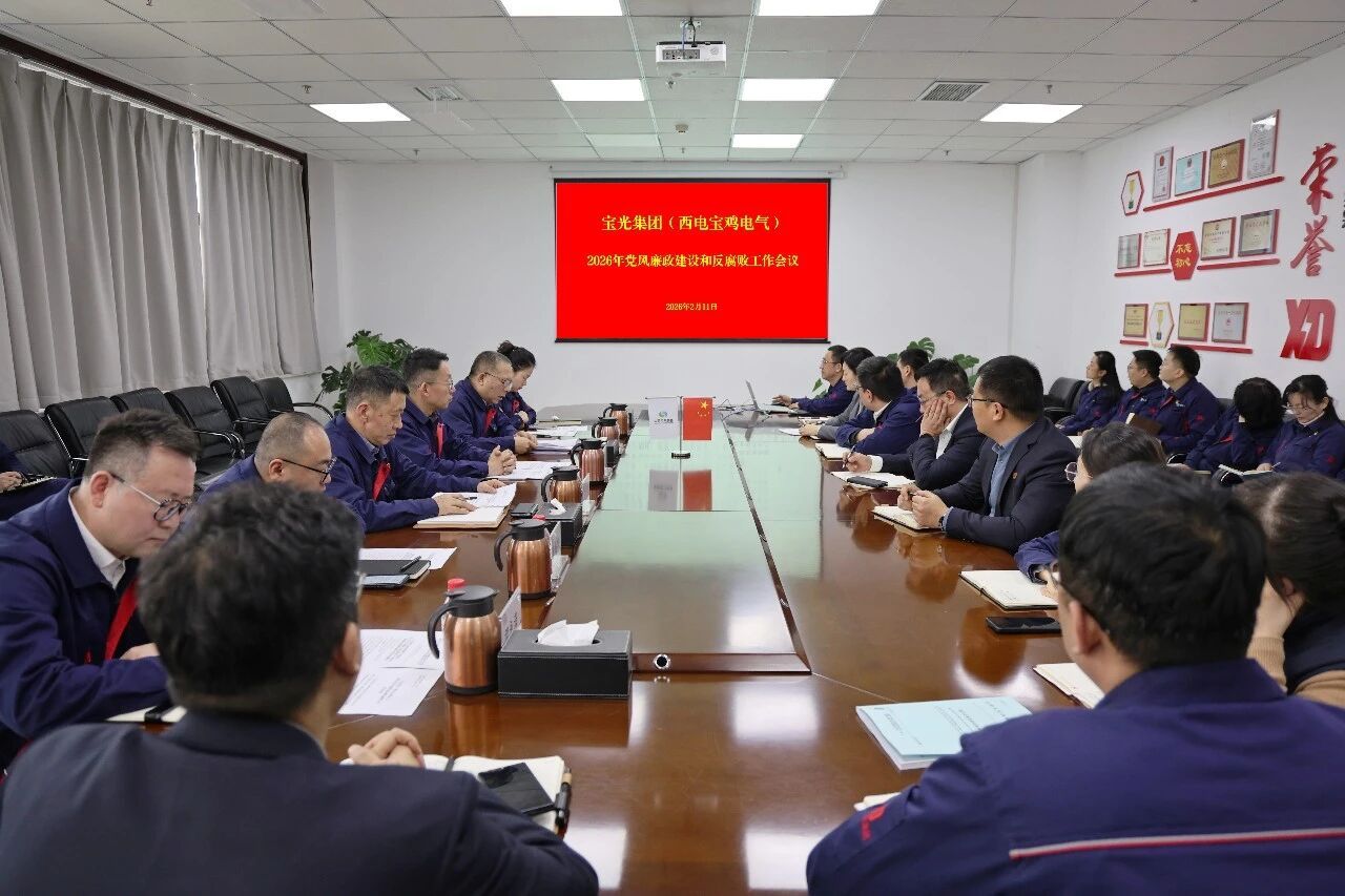 2月11日,宝光集团(西电宝鸡电气)党委组织召开2026年党风廉政建设和反腐败工作会议。会议以习近平新时代中国特色社会主义思想为指导,全面贯彻二十届中央纪委五次全会精神,认真落实国务院国资委党委、中国电气装备、中国西电集团党委党风廉政建设和反腐败工作会议的各项部署,通报典型警示教育案例,系统总结公司2025年党风廉政建设和反腐败工作,统筹部署2026年重点工作任务,发布了《宝光集团历次巡视巡察问题整改分析报告》,为公司高质量发展提供坚强保障。